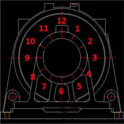 • а) Проблем: Коаксијалноста на ситно обработената внатрешна дупка на лежиштето на склопот на машинската основа со двојна потпора е нестабилна. По склопувањето, тоа ќе предизвика истекот на комората за лежиште на целата основа на машината да ја надмине толеранцијата, што не ги исполнува барањата за цртање.