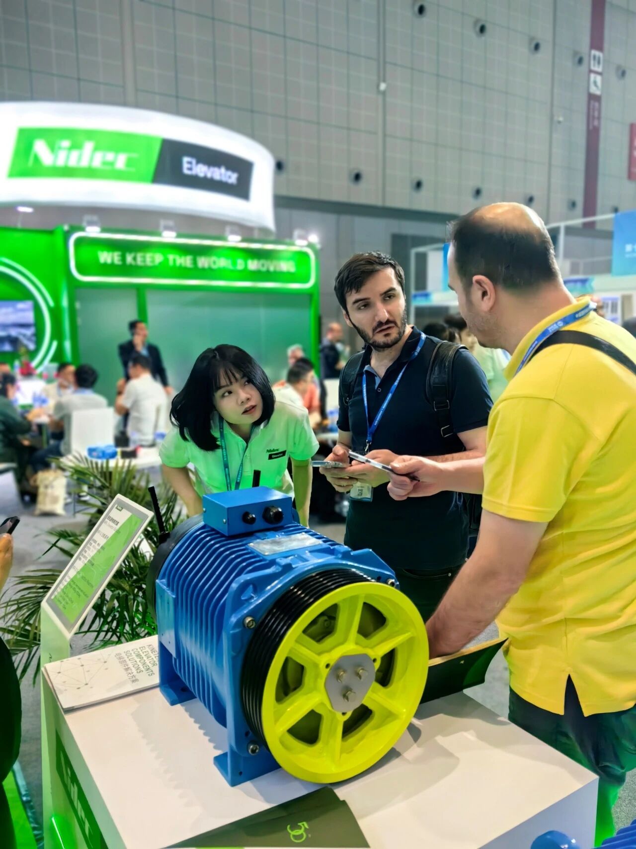 Nidec е најголемата светска компанија за мотори и контрола со деловна активност на компоненти за лифтови, распространета низ целиот свет. Кабината на NIDEC беше заеднички изградена од одделот за лифтови на групацијата, со продажни претставници од сестринските компании од САД и Колумбија. За време на изложбата, штандот беше преполн со посетители од Австралија, Мексико, Чиле, Аргентина, Панама, Малезија, Индија, Бангладеш, Сингапур, Јужна Кореја, Јапонија, Виетнам и други земји. Благодарение на изложбата, потпишавме голем број нарачки за машината и системот за контрола со клиентите на лице место. Еве ги главните моменти од шоуто.
